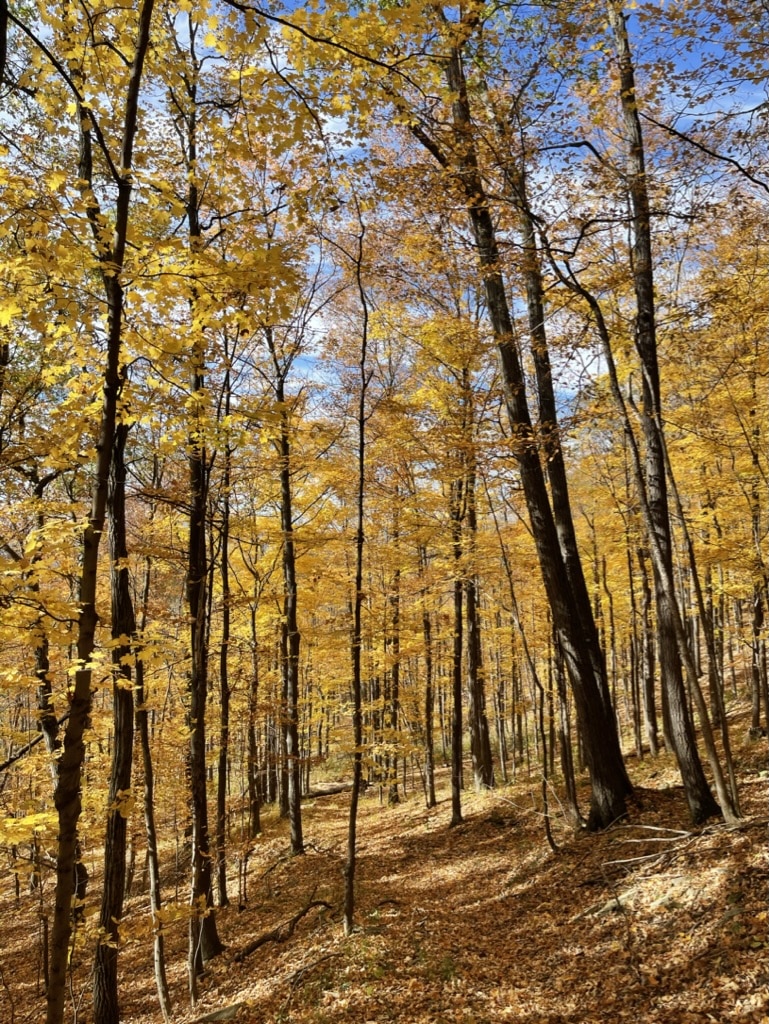 hardwood forest with bright yellow fall leaves